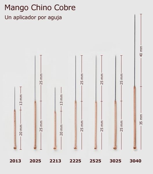 Agujas de acupuntura Cloud&Dragon-mango cobreado-Un aplicador cada 5 agujas- Caja 1000 unidades-Diametro: 0.25mm Largo útil: 25mm