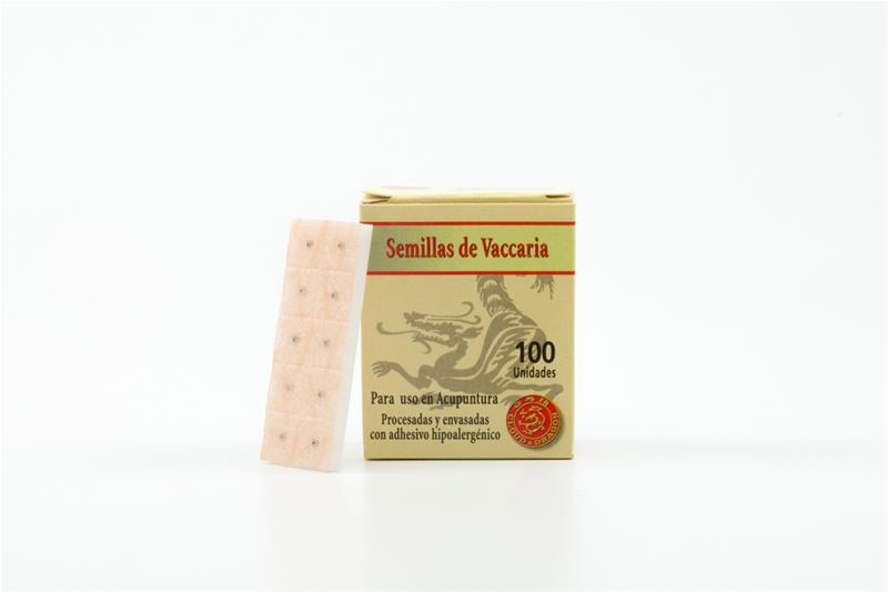 SEMILLAS NATURALES DE VACCARIAADHESIVO HIPOALERGÉNICO COLOR PIELORIGEN: CHINASEMILLAS DE VACCARIA SELECCIONADAS DE 2 MM DE DIÁMETRO APROX. PARA USO EN AURICULOTERAPIACON ADHESIVOCAJA DE 100 UNIDADES