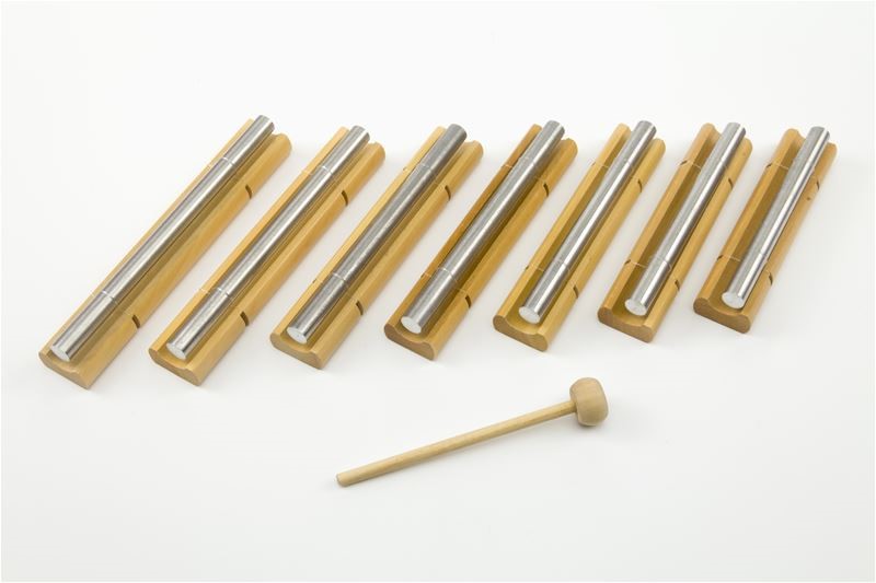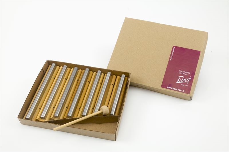 Se compone de una varilla cilíndrica de metal liviano suspendida sobre una base de madera que se percute con una pequeña baqueta. Produce un sonido agudo, claro y brillante y están afinados individualmente en su tono fundamental. Su característico sonido agudo permite disipar bloqueos energéticos en ambientes y personas. También se utilizan en el inicio y cierre de sesiones grupales o individuales. Debido a que están afinados en tonos determinados se pueden aplicar a la armonización de chakras.